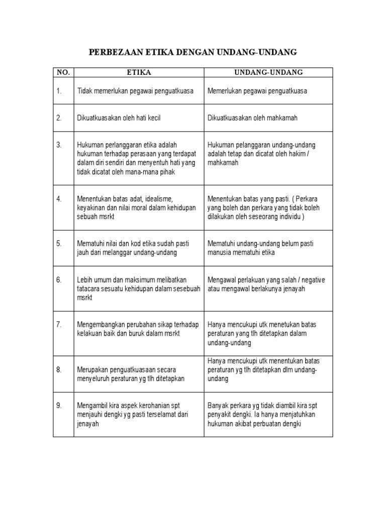 Perbezaan Etika Dengan Undang