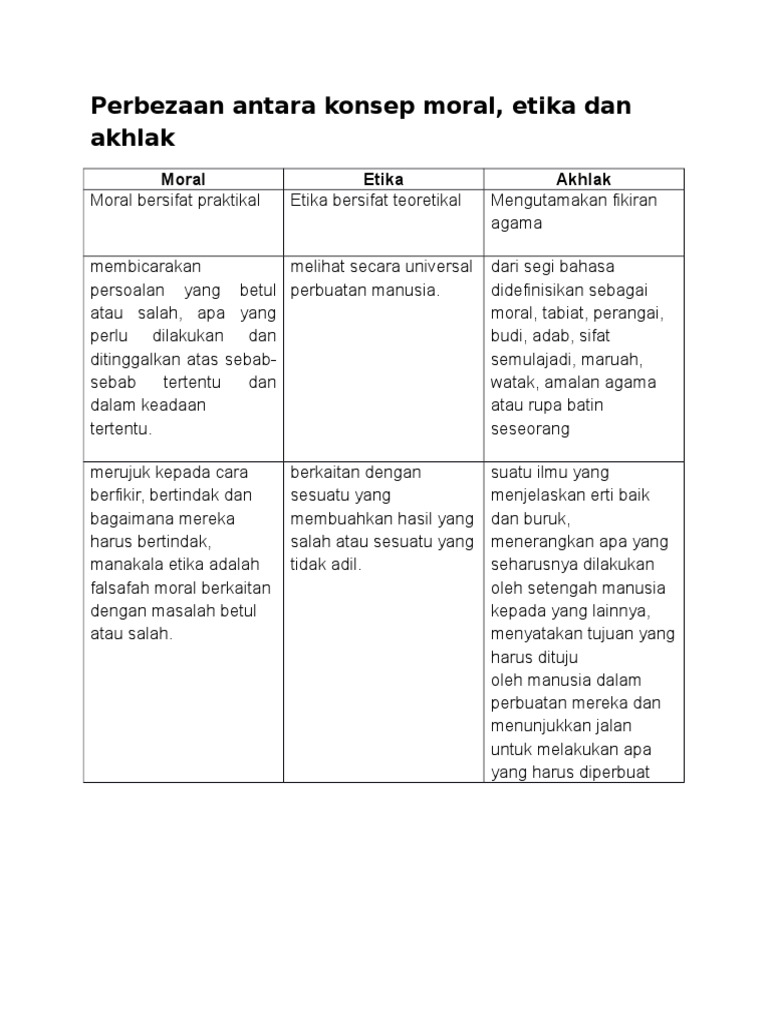 Perbezaan Dan Persamaan Akhlak Dan Moral