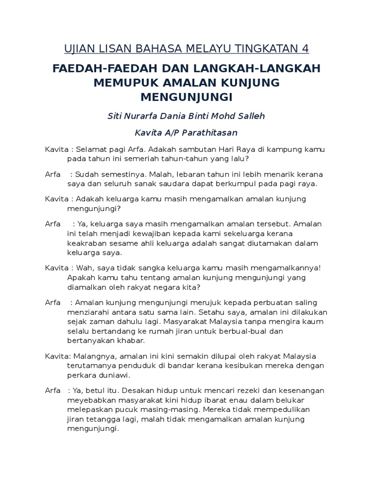 Contoh Dialog Bahasa Melayu 2 Orang Untuk Lisan Spm