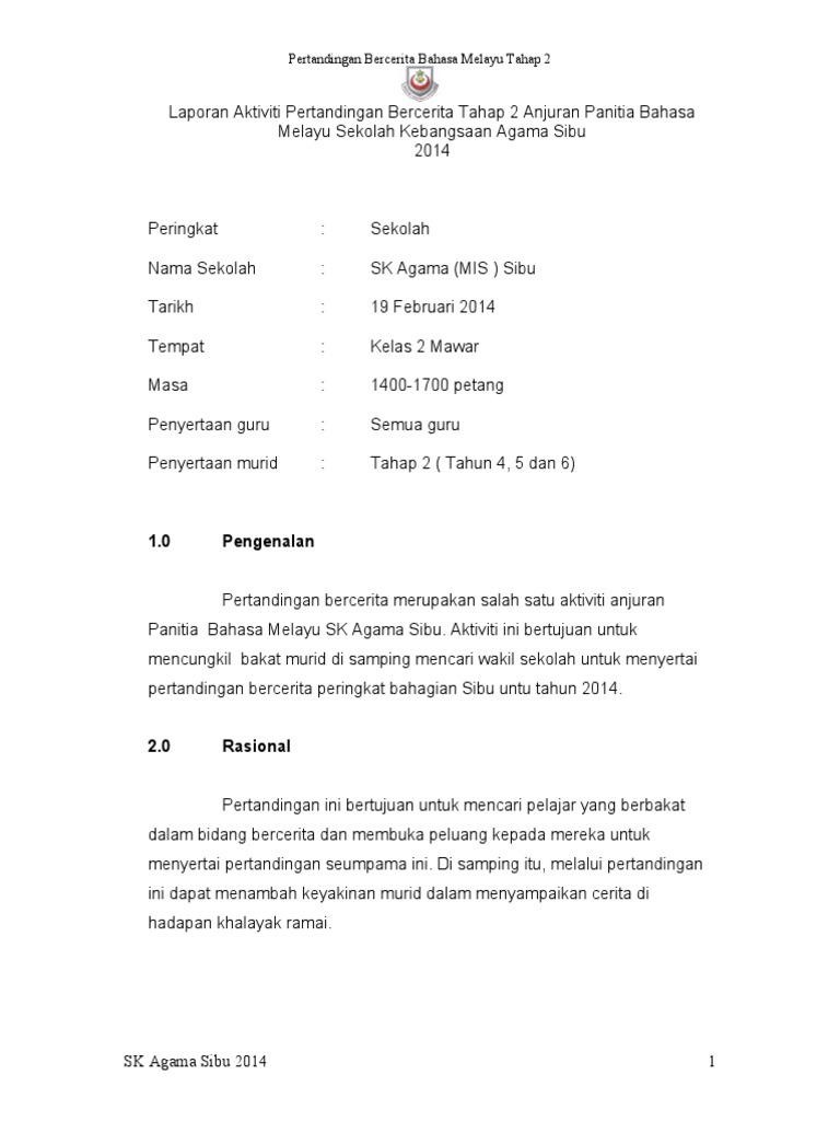 Laporan Pertandingan Bercerita Bahasa Melayu Tahap 2 Dah Diedit