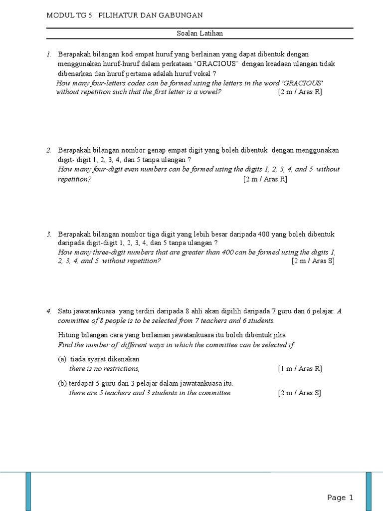 Pilihatur Dan Gabungan Pilihatur Dan Gabungan Kata Kunci Mengenalpasti Pilihatur Atau Gabungan Pilihatur Gabungan Tertib Diambil Kira Tertib Tidak Course Hero