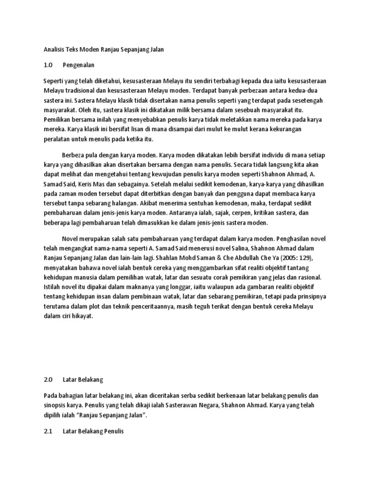 Analisis Teks Moden Ranjau Sepanjang Jalan