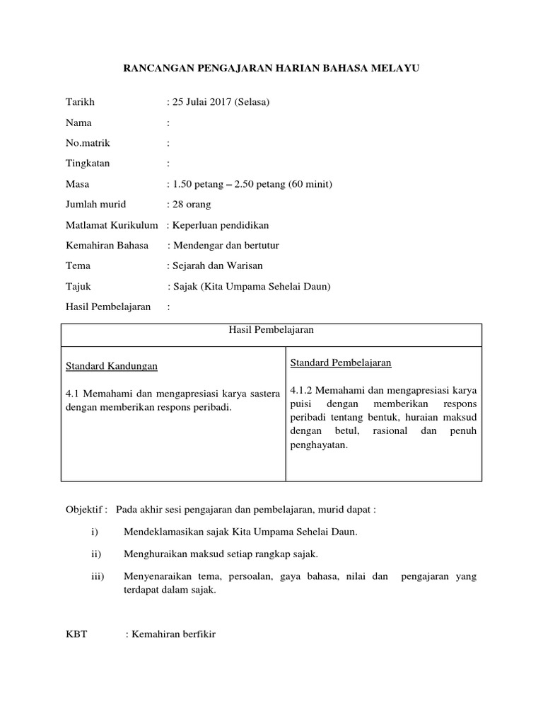 Komsas Tingkatan 1 Kita Umpama Sehelai Daun Cute766