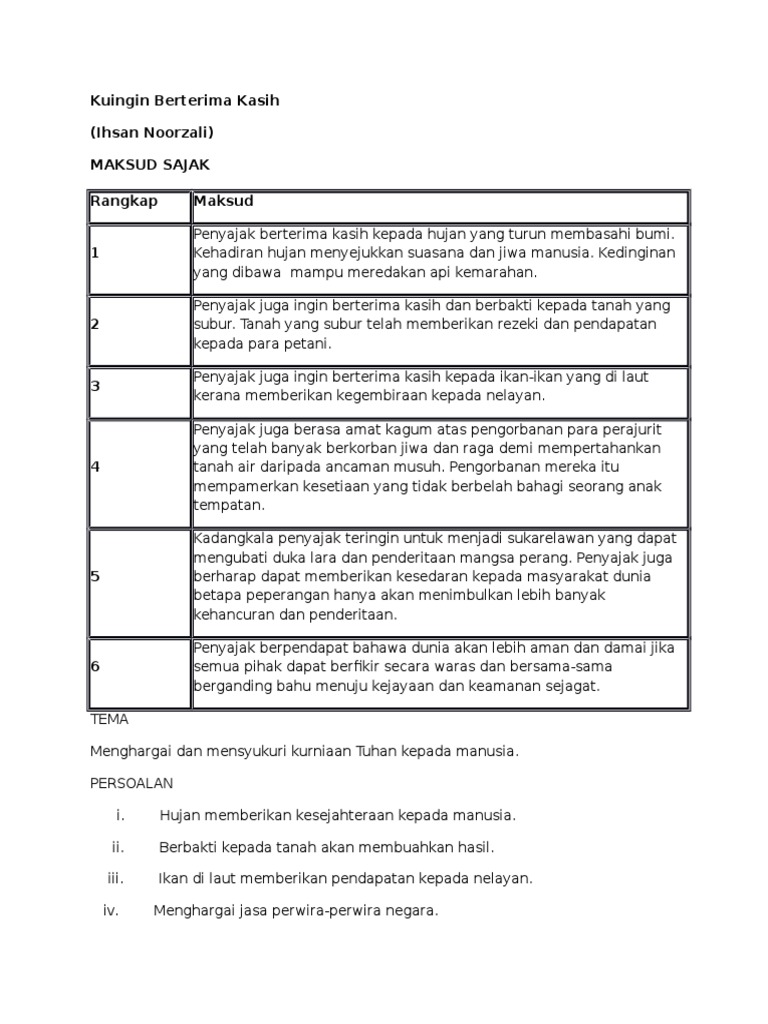 Sajak Kuingin Berterima Kasih Nota Ringkas