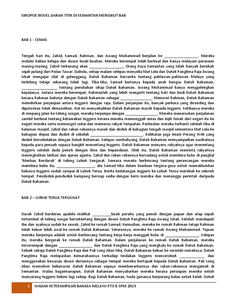 Komponen sastera dan novel bm bahasa melayu. Sinopsis tema persoalan. Negeri johor sabah sarawak dan wilayah persekutuan labuan sinopsis darah titik di semantan. Watak perwatakan plot dan nilai pengajaran.
