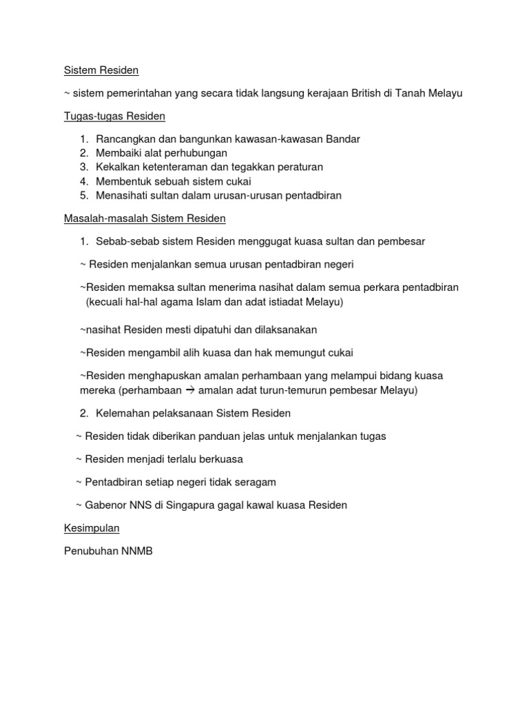 Sistem Residen Di Tanah Melayu Tingkatan 3
