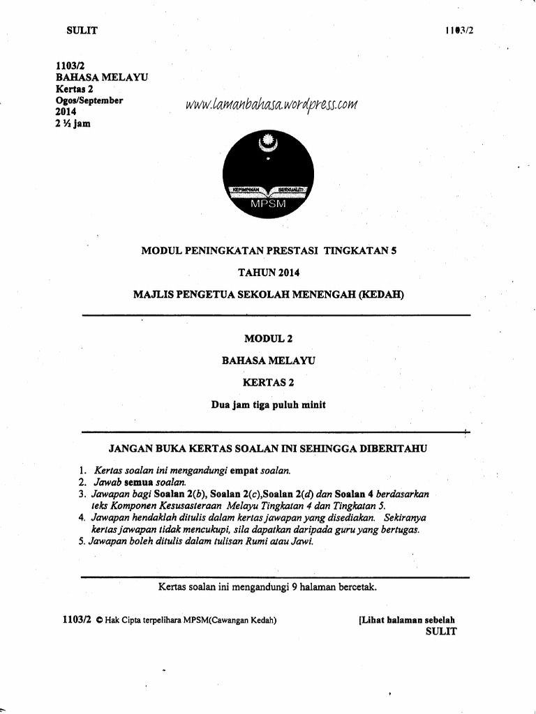 Laman Bahasa Melayu Spm Soalan Kertas Bahasa Melayu 2 Dan Skema Jawapan Peperiksaan Percubaan Spm Smk Seri Londang 2017