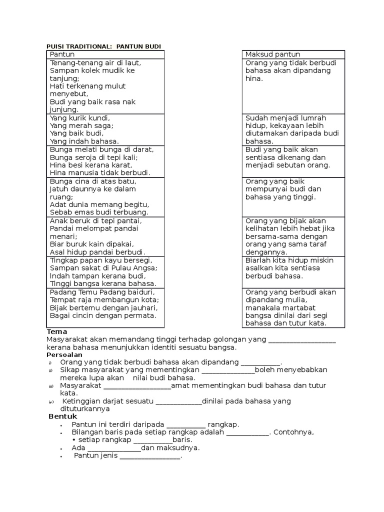 Soalan Komsas Tingkatan 2 Baik Budi Indah Bahasa