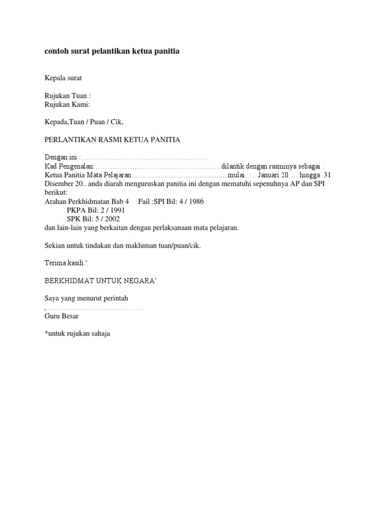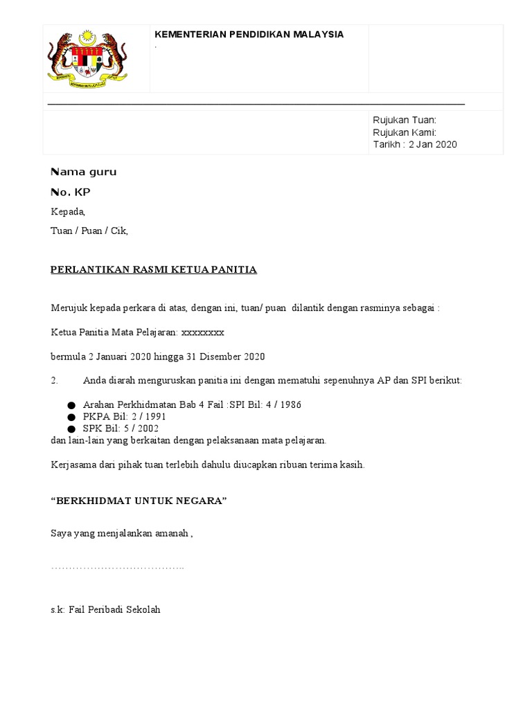 Surat Pelantikan Sebagai Ketua Pentaksir Pentaksir Pt3 2014