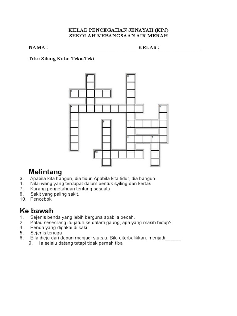 Pelbagai Teka Silang Kata Pengetahuan Am Sekolah Rendah Yang Sangat Terhebat Untuk Murid Dapatkan Contoh Resume Cover Letter Curriculum Vitae Terbaik