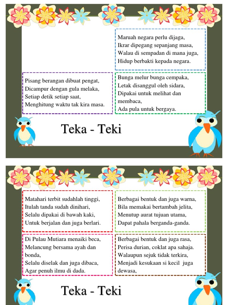 Bermacam Contoh Teka Teki Kanak Kanak Mudah Yang Baik Untuk Para Guru Pekeliling Terbaru Kerajaan