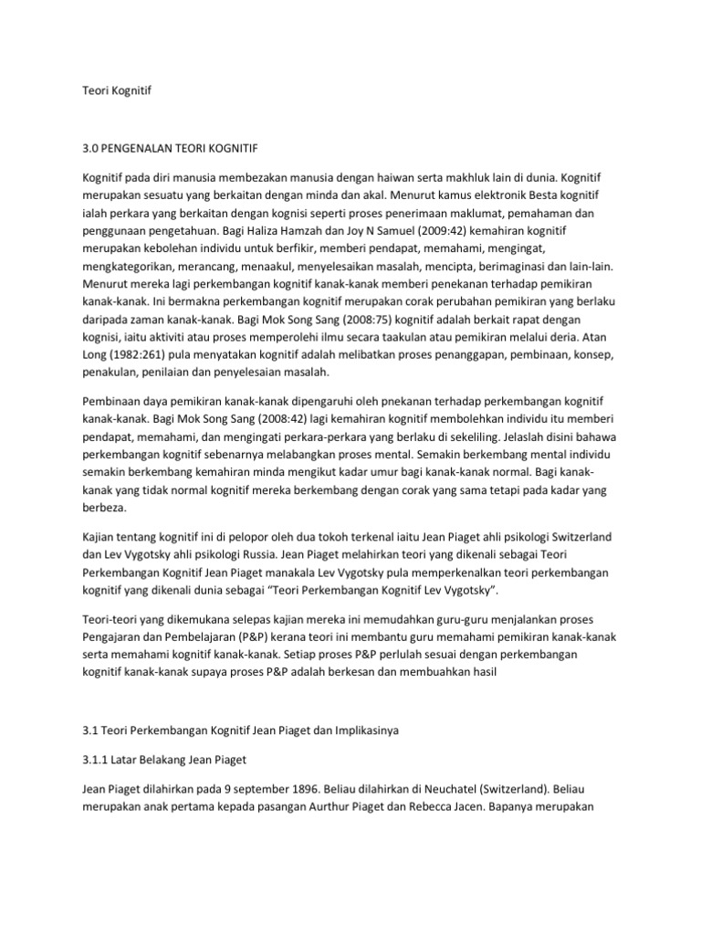 An Kognitif Menurut Piaget Dan Vygotsky Pdf Document