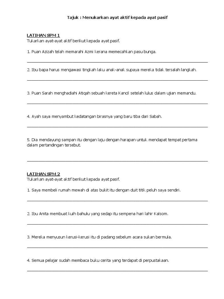 Tukar Ayat Pasif Kepada Ayat Aktif Spm