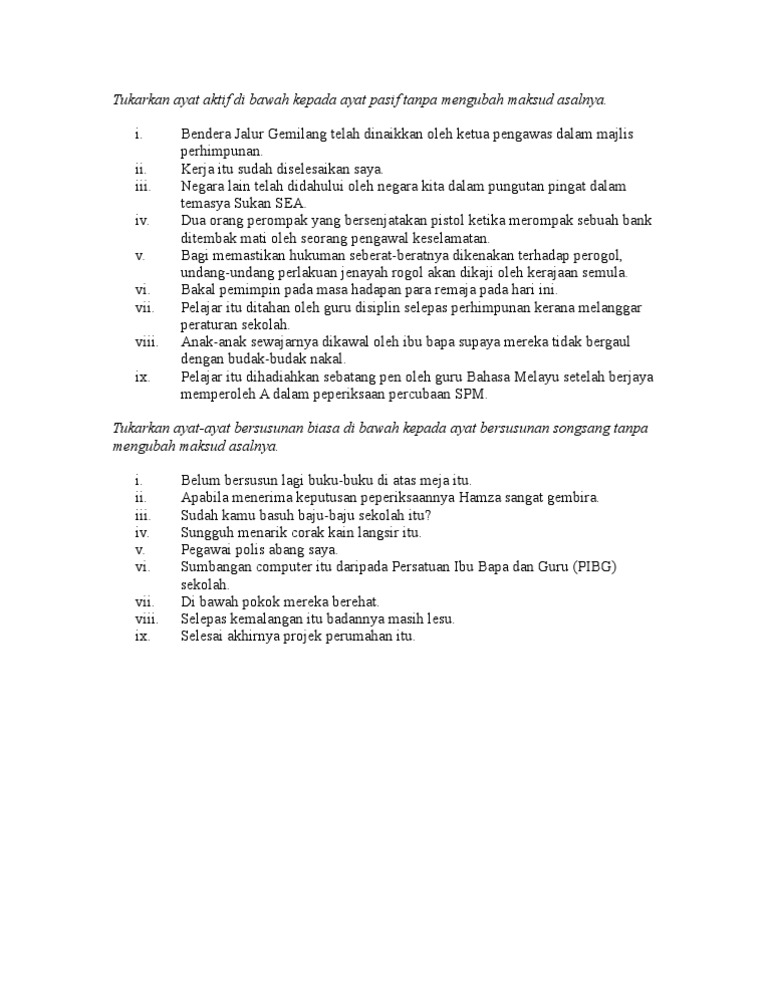 Tukar Ayat Aktif Di Bawah Kepada Ayat Pasif Tanpa Mengubah Maksud Asalnya