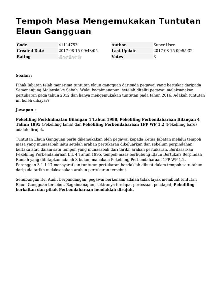 Tempoh Masa Mengemukakan Tuntutan Elaun Gangguan