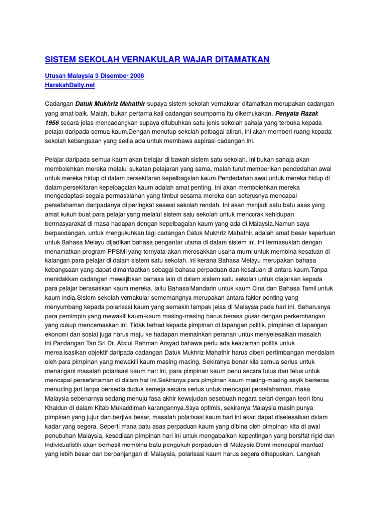 Wira putra kecewa sekolah vernakular dikekalkan please subscribe. Baru lah betul itu rakyat malaysia. Dr mahathir sebelum ini menyeru rakyat menghantar anak ke sekolah kebangsaan dan sekolah wawasan walaupun sekolah vernakular tetap dikekalkan. Isu sekolah aliran bahasa kebangsaan sebagai bahasa pengantar dan sekolah aliran bahasa ibunda seperti bahasa cina mandarin dan bahasa tamil bukanlah satu isu baru.
