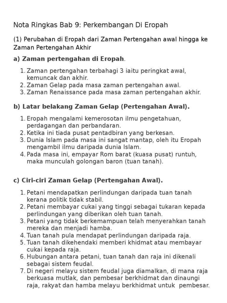 Nota Ringkas Bab 9 Perkembangan Di Eropah